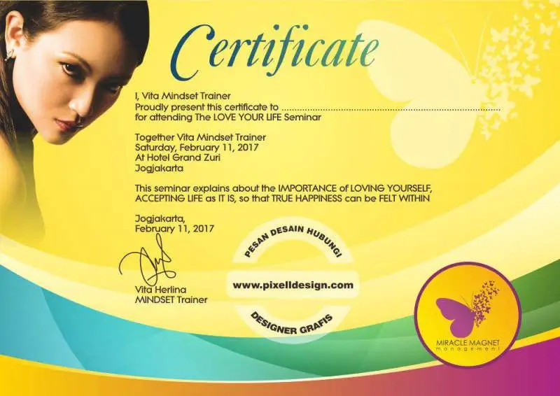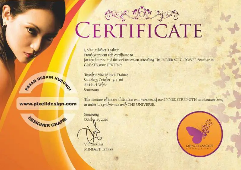 Sertifikat adalah dokumen resmi yang memberikan pengakuan atas pencapaian atau keikutsertaan seseorang dalam suatu kegiatan atau program tertentu. Desain sertifikat yang baik dapat memberikan kesan profesional dan prestisius, serta meningkatkan nilai dari sertifikat itu sendiri.