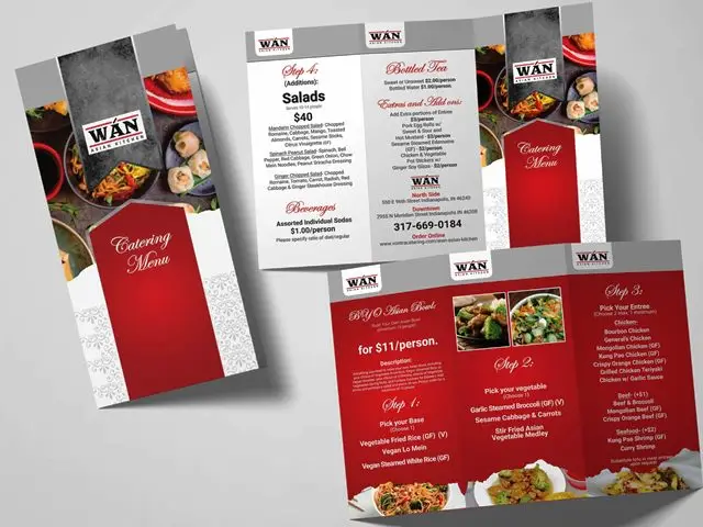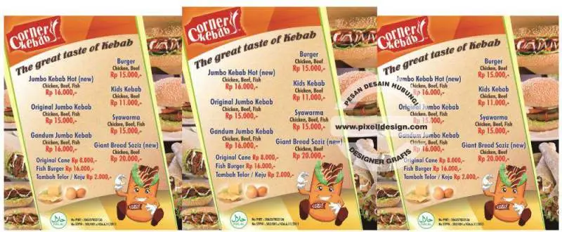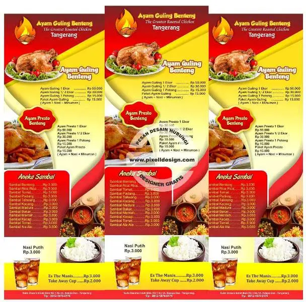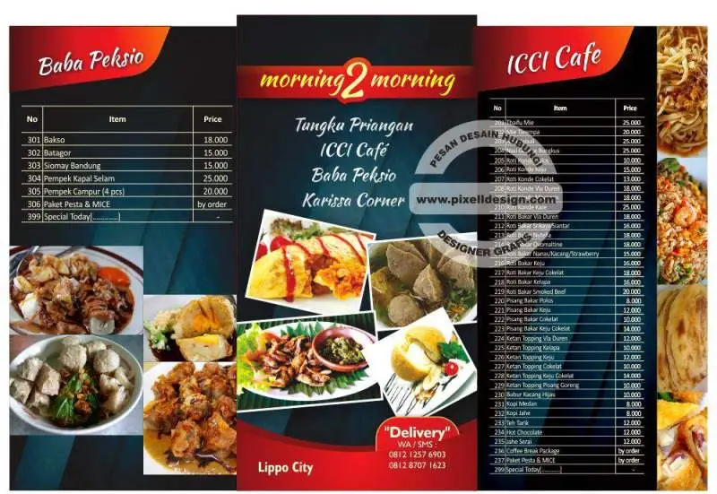 - Sesuaikan corak menu dengan makanan yang dijual termasuk warna dominan pada desain menu