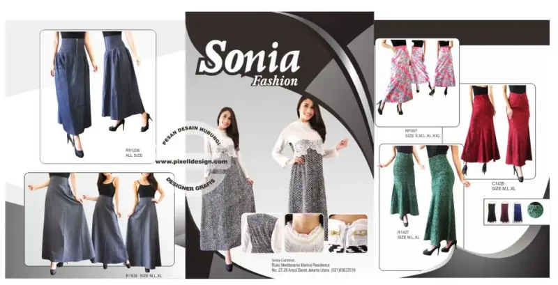 Berikut ini beberapa contoh katalog di bidang fashion / baju. Penataan rapi dan elegan tapi tetap menonjolkan unsur keanggunan baju tersebut.