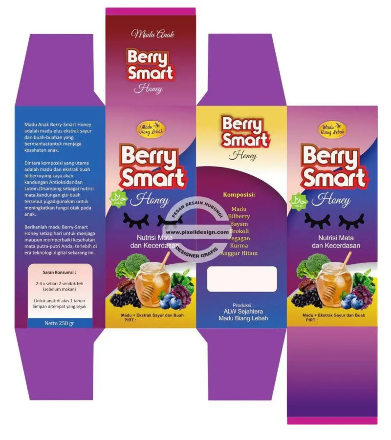 - Gunakan dekorasi yang pas sesuai keunggulan madu tersebut.