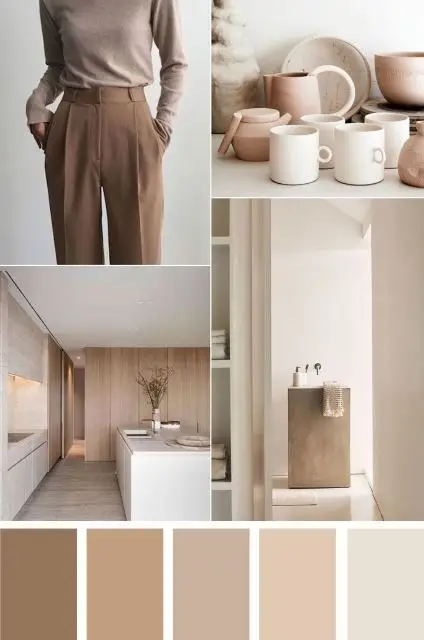 Palet warna coklat minimalis adalah kombinasi warna yang populer di kalangan desainer karena memberikan nuansa klasik yang terlihat lembut. Terdapat beberapa nuansa coklat yang bisa digunakan dalam satu desain, misalnya coklat gelap, cokelat muda, cokelat kemerahan, dan sebagainya. Kombinasi antara coklat muda dan krem biasanya menjadi pilihan yang paling populer karena memberikan kesan netral dan bersahaja di dalam desain.