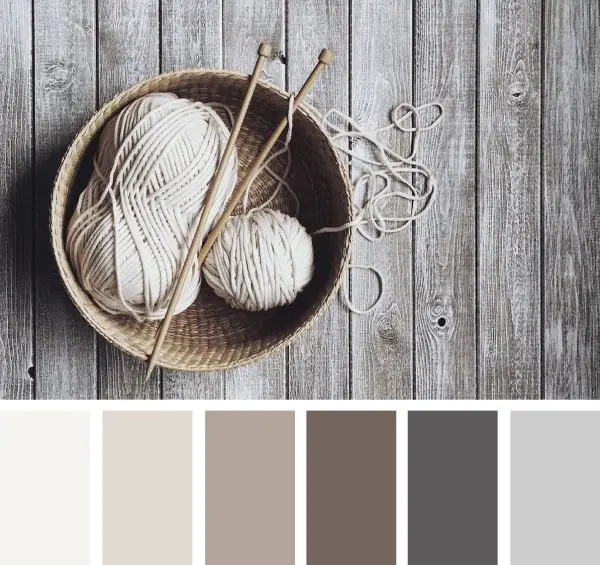 Warna-warna seperti abu-abu dan coklat yang diredam merupakan palet warna yang banyak digunakan dalam desain pedesaan. Warna ini memberikan nuansa alami dan bersahaja yang sering kali dihubungkan dengan kehidupan di pedesaan. Kombinasi warna ini mengingatkan kita tentang rumah-rumah kayu yang megah di wilayah pedesaan. Palet warna pedesaan ini bisa digunakan dalam desain grafis, desain interior ruangan, dekorasi pesta, dan sebagainya.